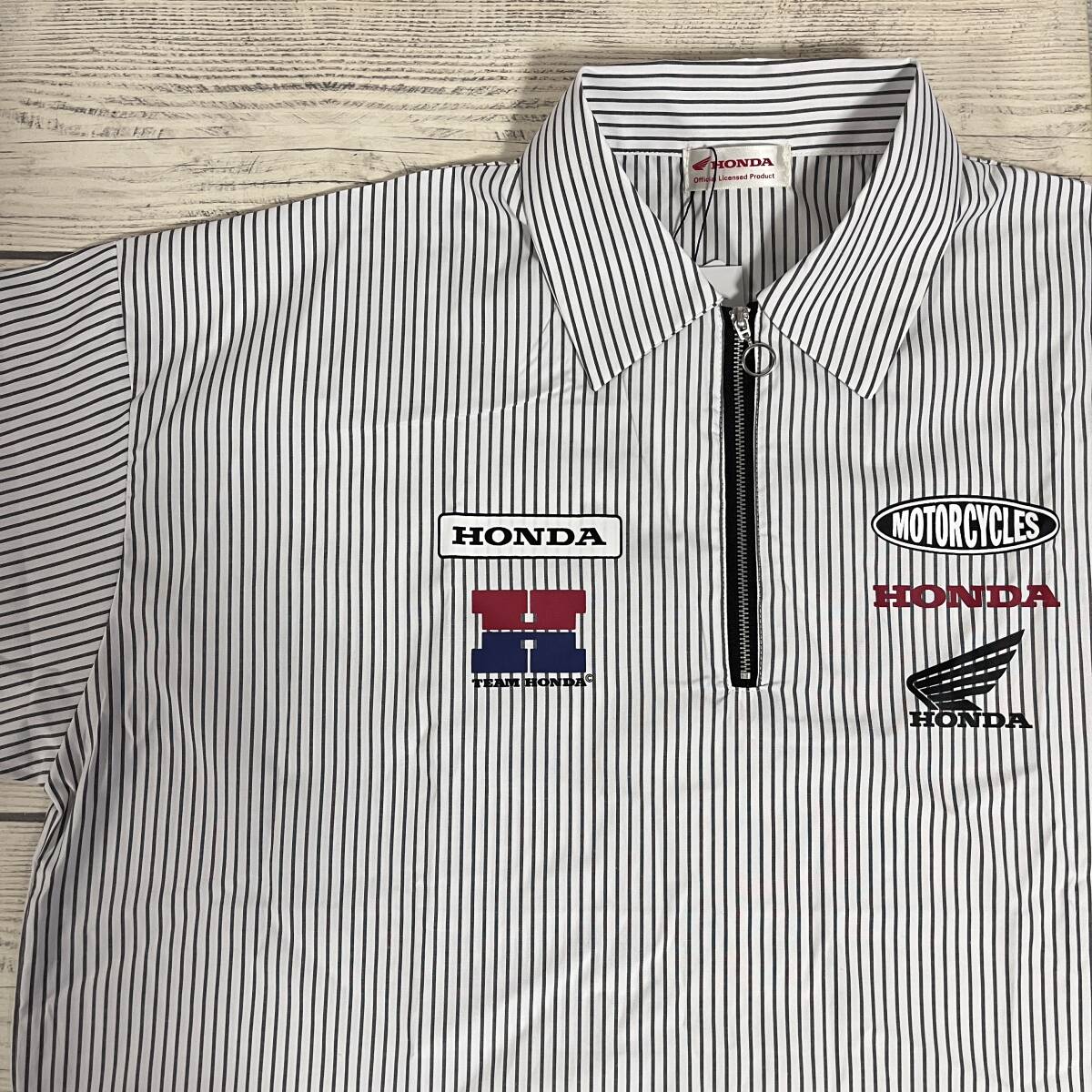 - ★ 本田技研工業 ★ ハーフジップシャツ Lサイズ 白 半袖 ホンダウイング HONDA ホンダ ホンダレーシング TEAM HONDA (タグ付き新品未使用)