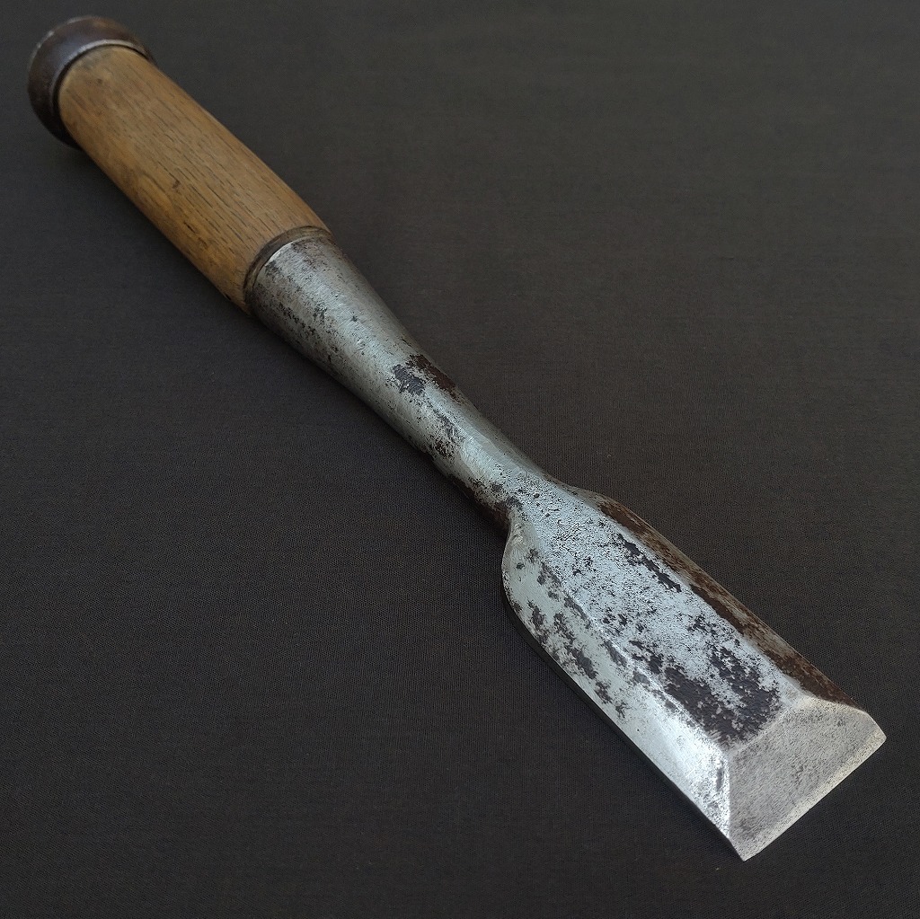 > 叩き鑿 在銘 36㎜ 全長約257㎜ 半叩き 古鑿 のみ ノミ 大工道具 刃物 日本製 Japanese Mortise Chisel 【6006】