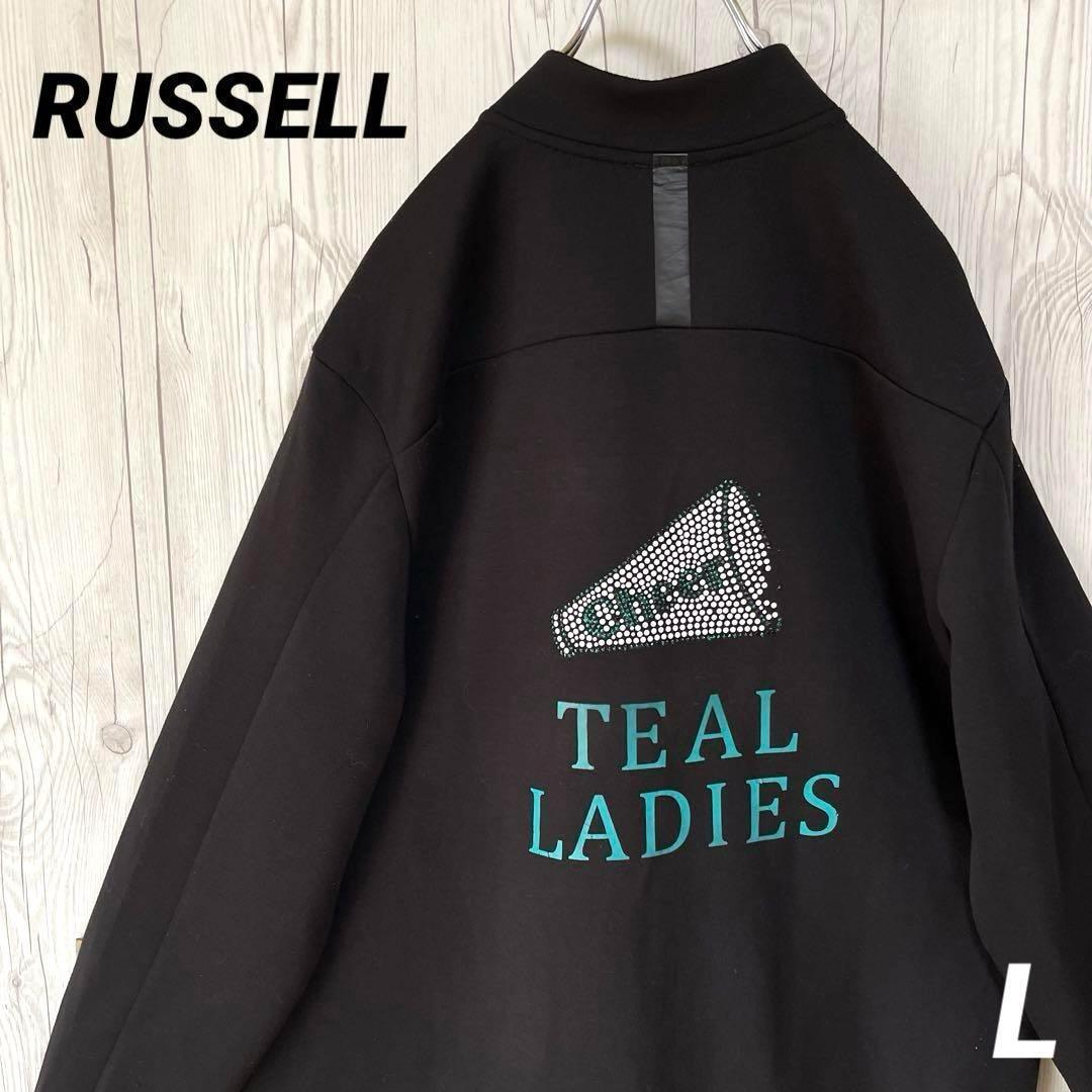 > ラッセル RUSSELL ジップアップブルゾンジャケット バックプリ ブラック 黒 メンズLサイズ スウェット
