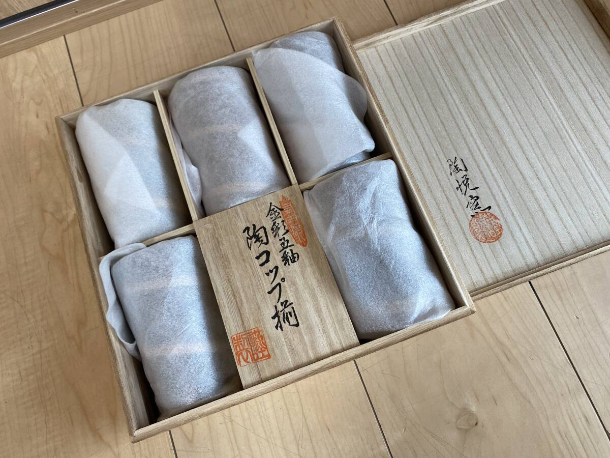 - 有田焼 陶悦窯 金彩五釉 陶カップ揃 中古未使用