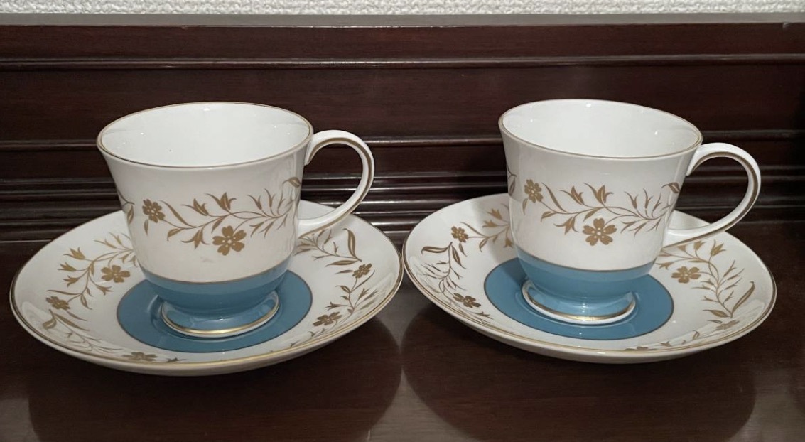 - 【SALE】■コーヒーカップ&ソーサー 2個セット ターコイズ色 ソーサー別色2枚付き スージークーパー SusieCooper イギリス アンティーク B