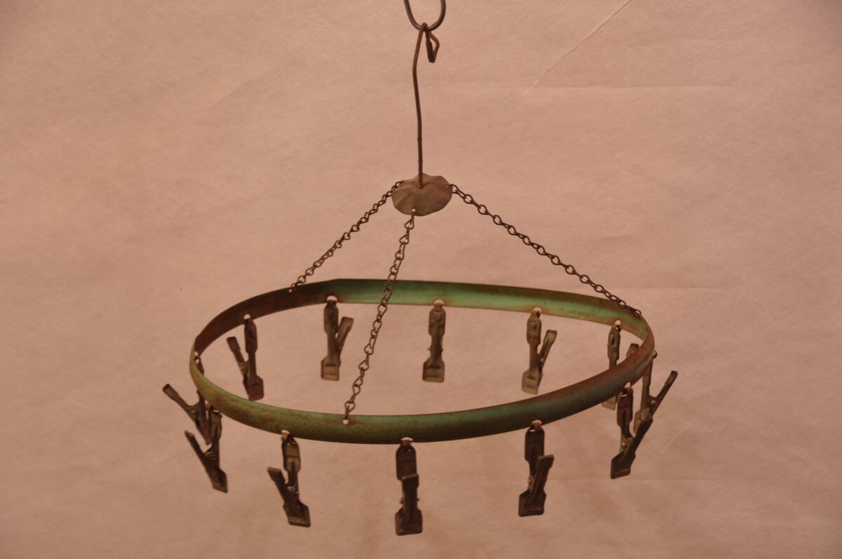 - ヴィンテージ 店舗什器 スチール製 錆びた洗濯物干し サビサビのレトロ物干し 円形タイプ アンティーク 中古ピンチ鉄
