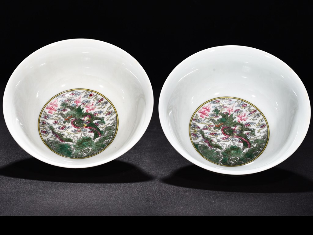 - TA249■中国古玩 唐物 清雍正年製 款 琺瑯彩雲龍紋碗2客 極上品■