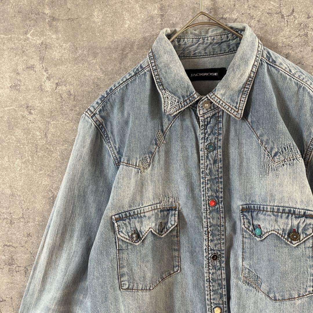 - JACK ROSEデニムシャツ 長袖 カラフルパールボタン サイズ3 タイトM程