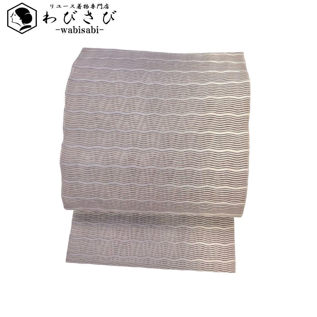 > 夏帯 絽 名古屋帯 よれ縞織模様 グラデーション 藤鼠色 O-3767 着物 きもの kimono 和服 和装 中古 リサイクル着物 【送料無料】