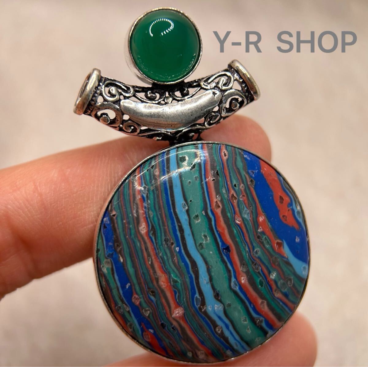 > カラフルストーンのグリーンオニキスのアンティーク調ペンダントトップ ★レディースメンズネックレスシルバー 925刻印エスニック新品Y-R