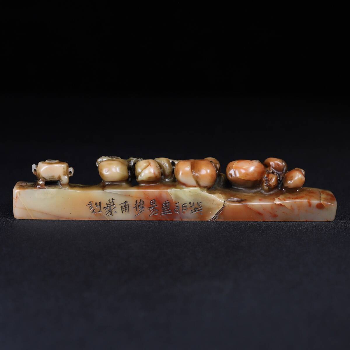 - 【超珍館蔵】寿山石 芙蓉石 細密彫 寿桃印章 文房具 書道品 古賞物 古美術品 稀少珍蔵品