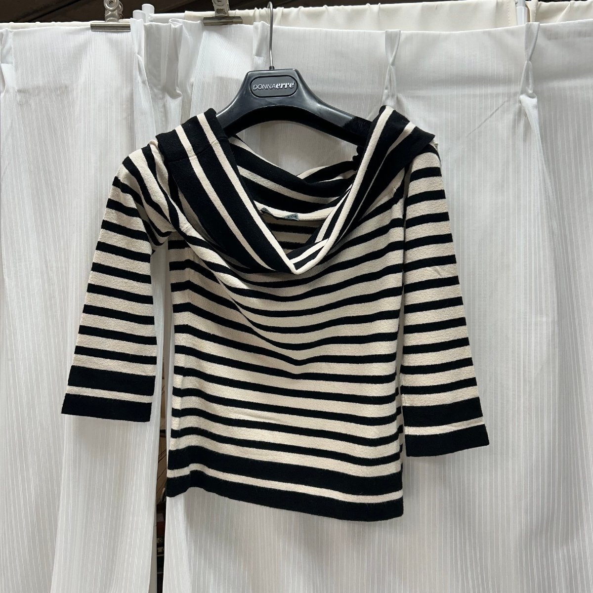 > &M& HILTON ヒルトン 五分袖 オフショルダー セーター サイズ42 オフショル ボーダー レディース ファッション 服 中古品 &H-250508