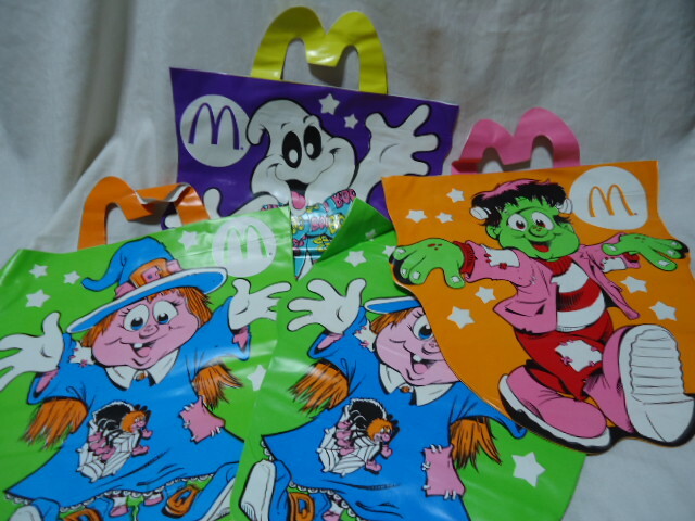 > 即決 US 1990年製 マクドナルド ハロウィン ナイロンバッグ 34~35.5センチ 4点セット 飾り物 新品 未使用物