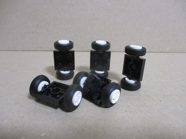 - レゴ パーツ 細タイヤ 黒プレート白ホイール 5セット 新品
