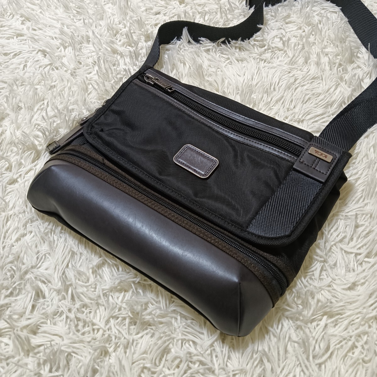 - 美品☆TUMI 222371HK2 トゥミ ショルダーバッグ アルファ ブラボー ビール クロスボディ バリスティックナイロン レザー 黒 紺 茶 鞄 USED