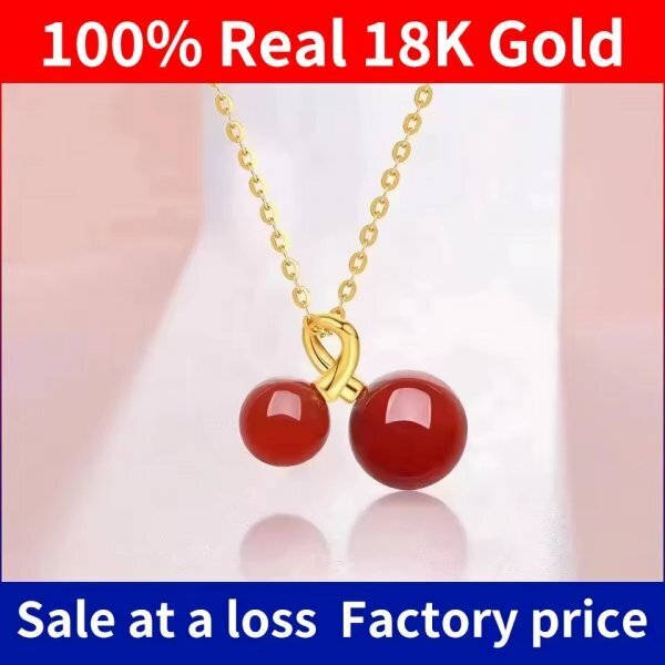 18Kリアルゴールドチェリーネックレス、女性のための本物のゴールドネックレス、高級ジュエリー