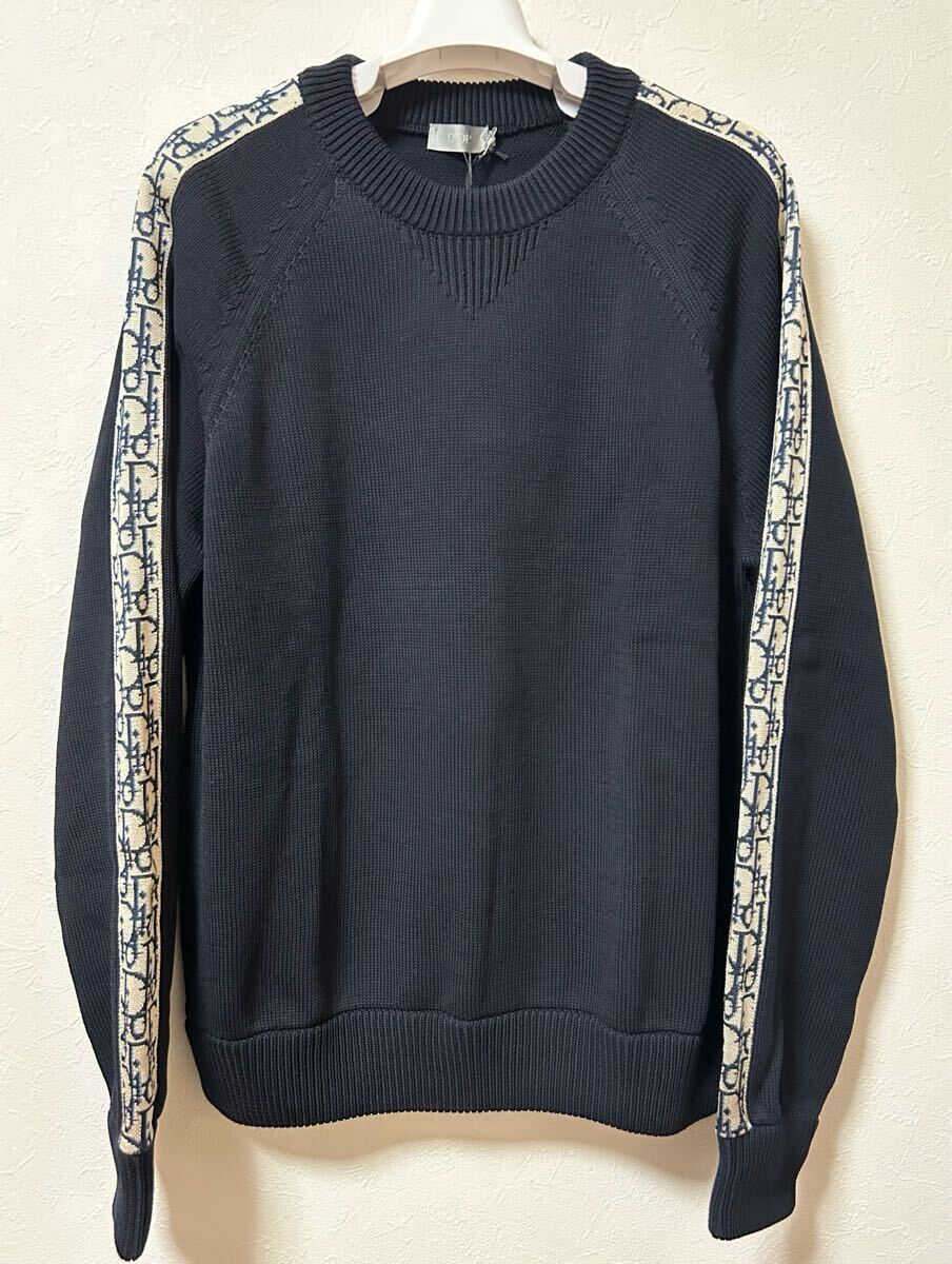 - 【新品タグ付】DIOR ディオール オブリーク コットンジャージー/セーター(Mサイズ)ネイビー/シルク/イタリア製