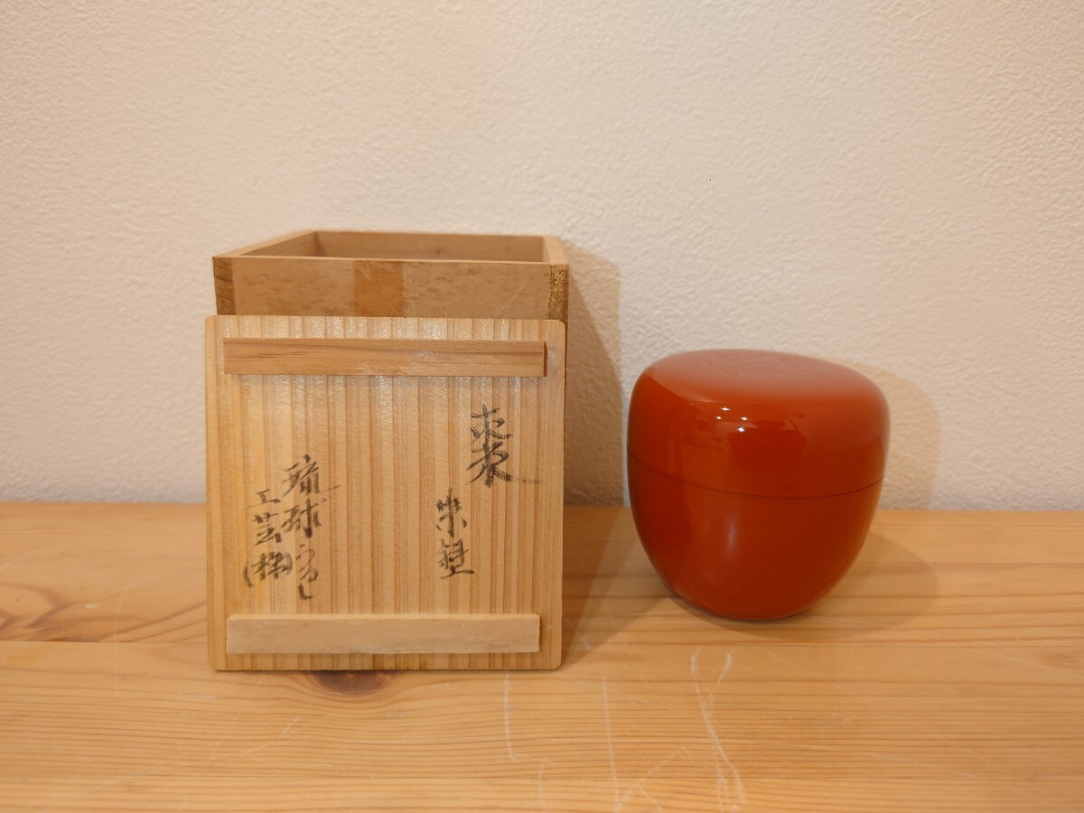- 美品★琉球うるし工芸㈱ 朱塗 棗(なつめ)★検)茶筒 茶道具 煎茶道具 抹茶入れ 漆器 共箱