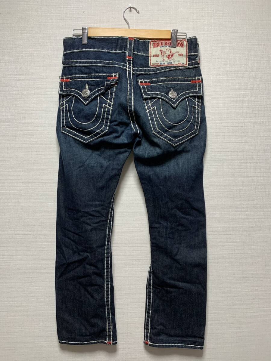 > 美品☆[TRUE RELIGION] RICKY SUPER T ストレート ホワイトステッチ インディゴデニムパンツ 29 USA製 メンズ トゥルーレリジョン
