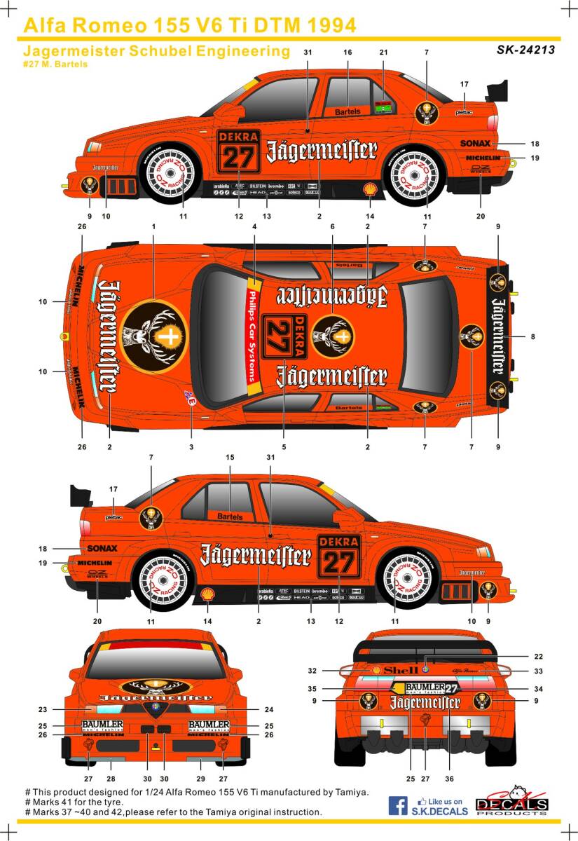 > S.K.DECALS SK24213 1/24 size Alfa Romeo 155 DTM 1994 イエーガーマイスター