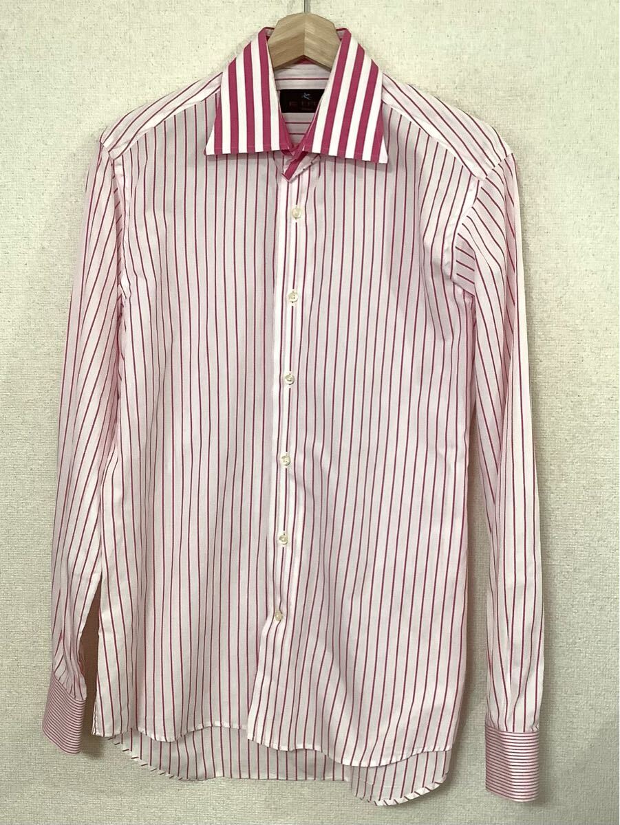 - ETRO エトロ ストライプ柄 長袖シャツ コットンシャツ レッド セレクト メンズ 古着 46