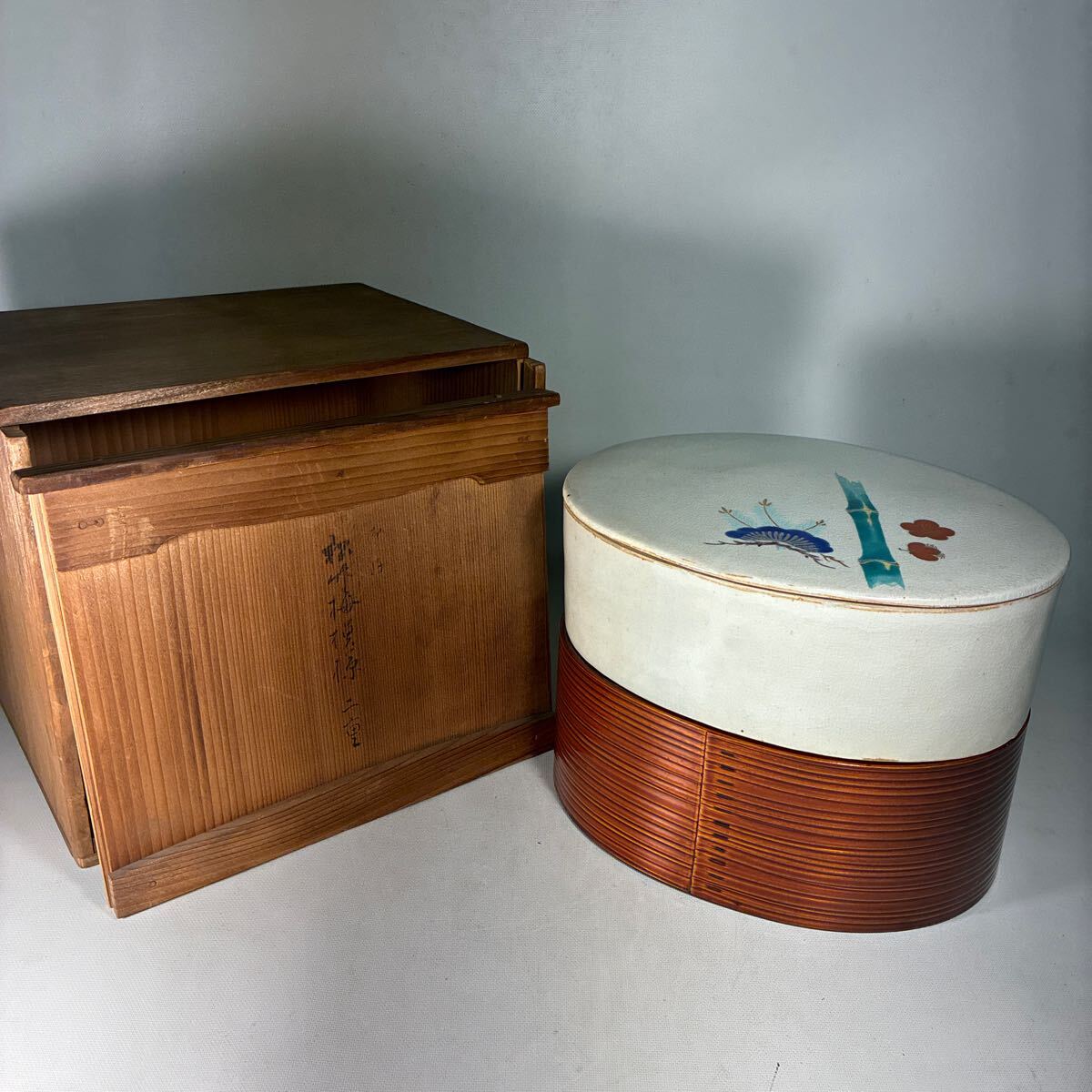 - 須田菁華造 松竹梅模様二重 重箱 曲げわっぱ 二段重 漆芸 漆器