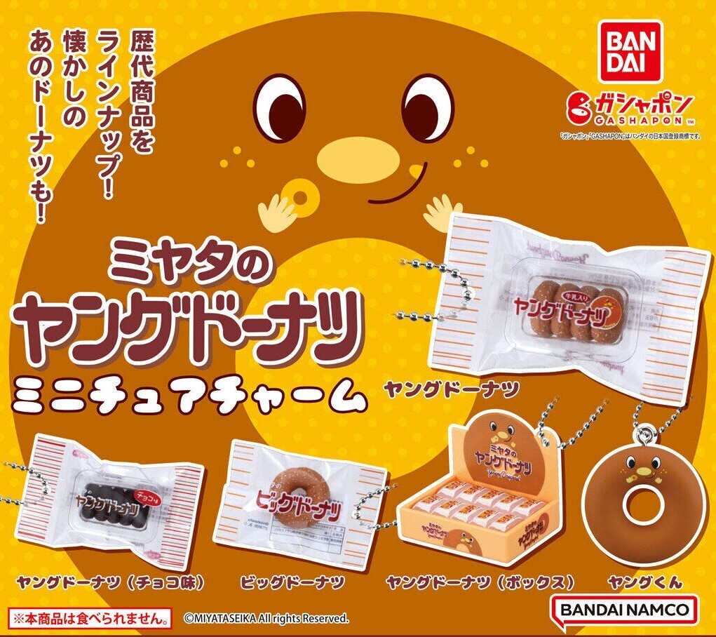 - ミヤタのヤングドーナツ ミニチュアチャーム 全5種 フルコンプセット 駄菓子 ドーナッツ ガチャ カプセルトイ 未開封
