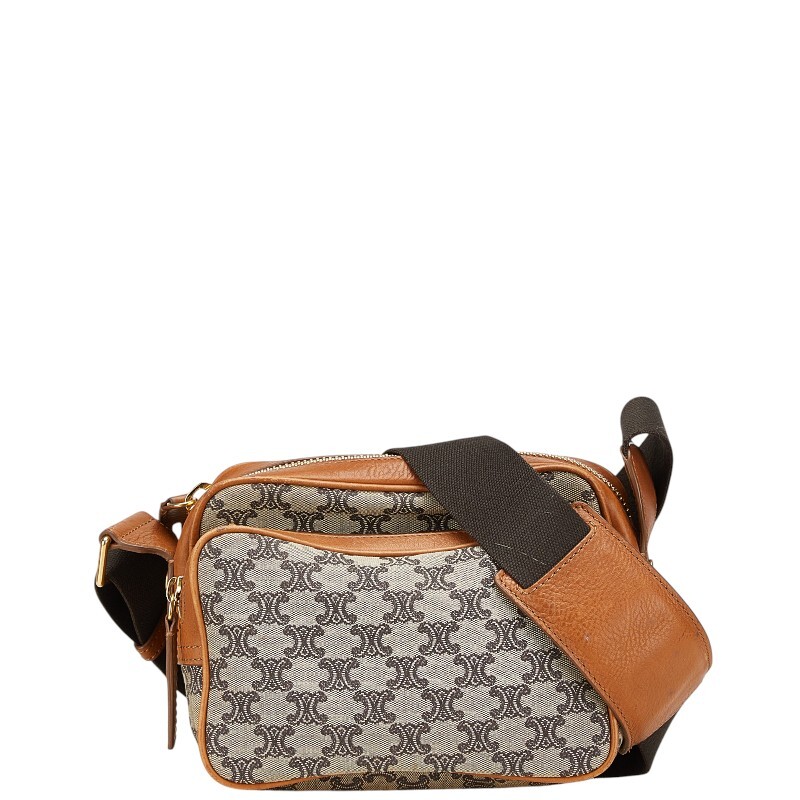 - セリーヌ マカダム 斜め掛け ショルダーバッグ カメラバッグ ベージュ マルチカラー キャンバス レザー レディース CELINE 【中古】