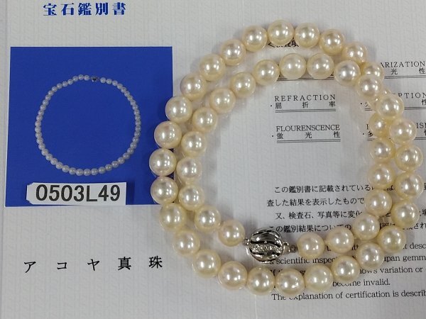 - 0503L49 本真珠 あこや ネックレスダイヤモンド付 刻印585 宝石鑑別書付 約40g