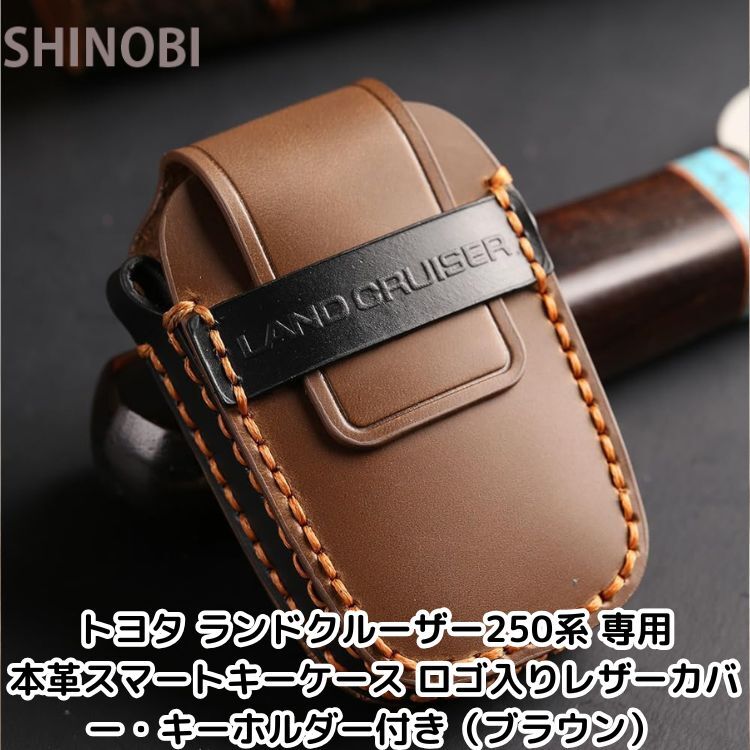 > トヨタ ランドクルーザー250系 専用本革スマートキーケース ロゴ入りレザーカバー・キーホルダー付き(ブラウン)