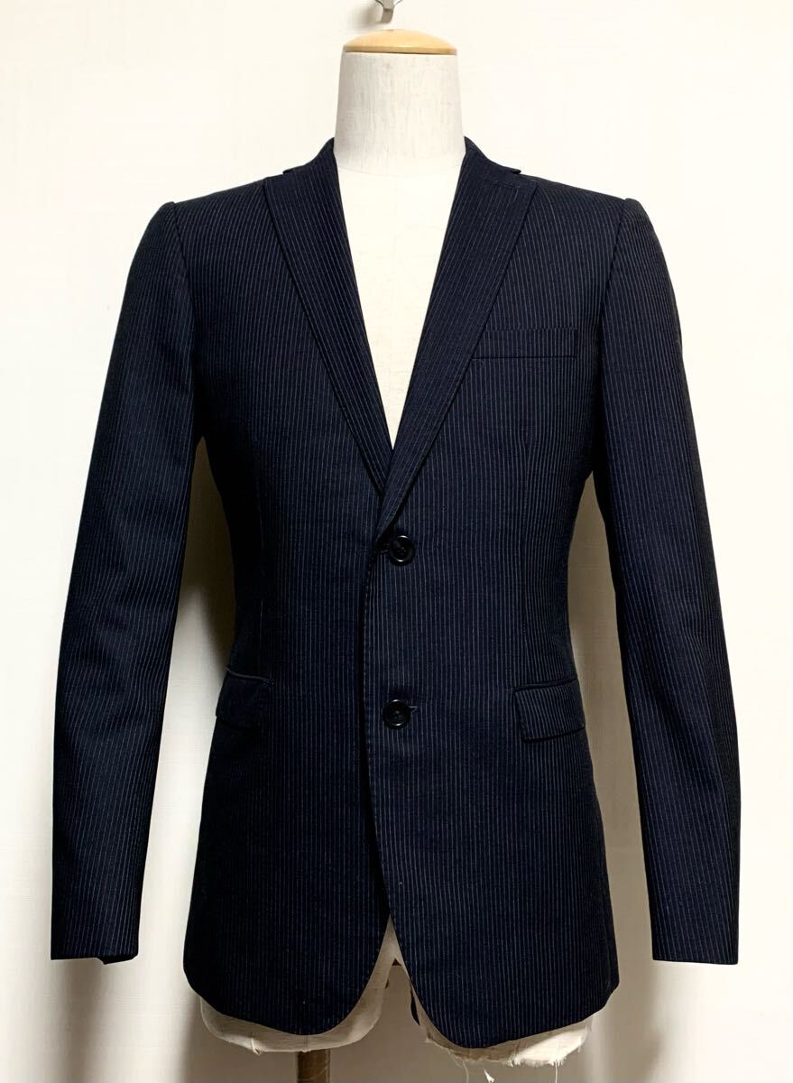 - 極上:アバハウス.スリム セットアップ スーツ(ジャケット 3/パンツ 2/ピンストライプ/前2B/お台場仕立て/肩43幅50/W78股下77/5351/ビジネス