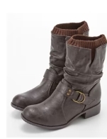 - ★未使用 タグ付★ 履口リブ編み ハーフブーツ M=23.5cm もちもちインソール ふかふか 吸湿発熱 ベルト付 ダークブラウン