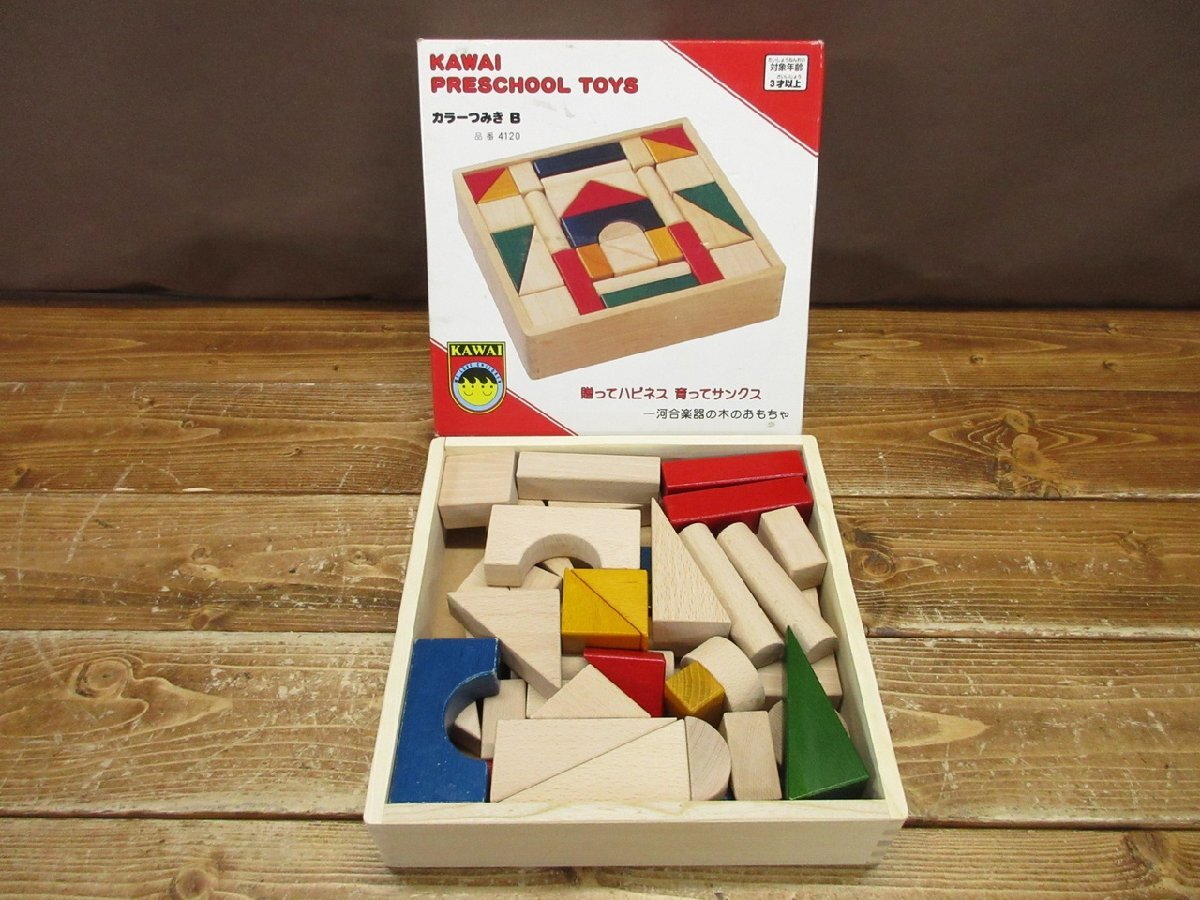 - 【WS-0626】河合楽器の木のおもちゃ カラーつみき 積み木 KAWAI PRESHCOOL TOYS 知育 玩具 木製 外箱付 東京引取可 現状品【千円市場】