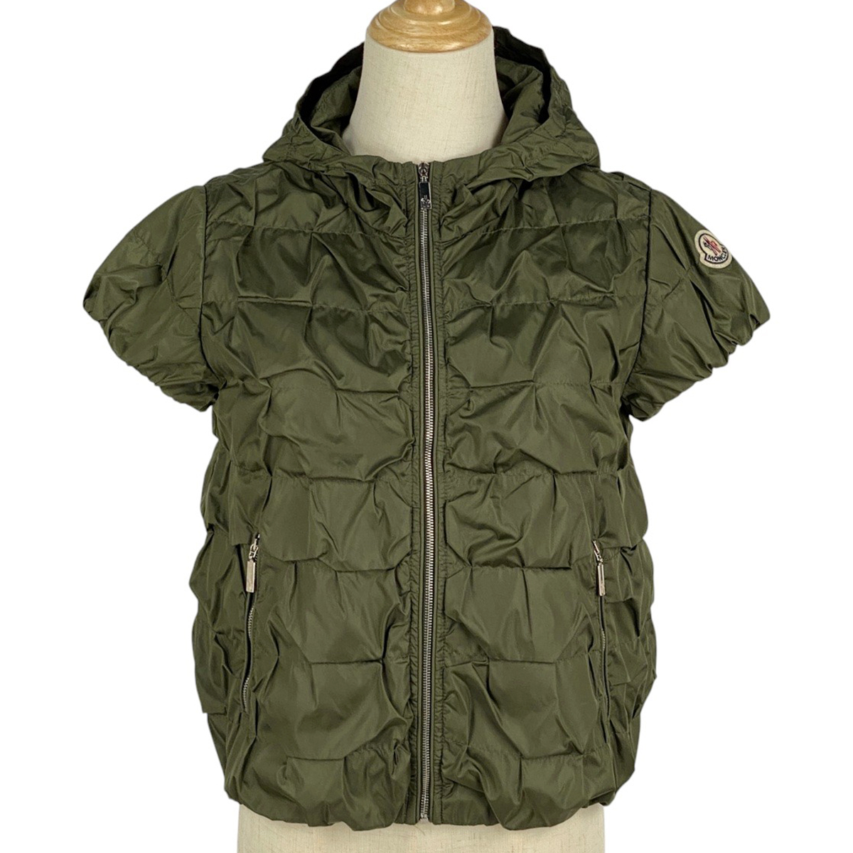 > モンクレール MONCLER ジップアップ ナイロン ベスト 半袖 ギャザー ジュニア トップス ベスト ナイロン グリーン レディース 【中古】