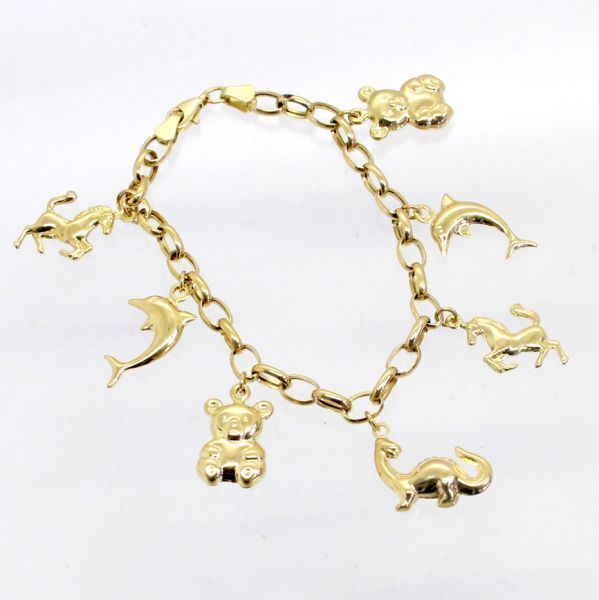 チャームはそれぞれ馬、クマ、イルカ、恐竜のかわいらしいデザインが施されています。チャームは中空構造です。