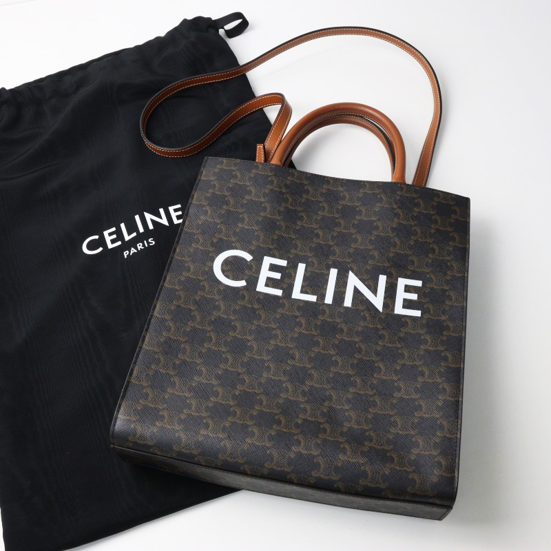 - 美品 セリーヌ CELINE スモール バーティカルカバ トリオンフ トートバッグ/ブラウン ロゴ 2way ショルダーバッグ【2400014418644】