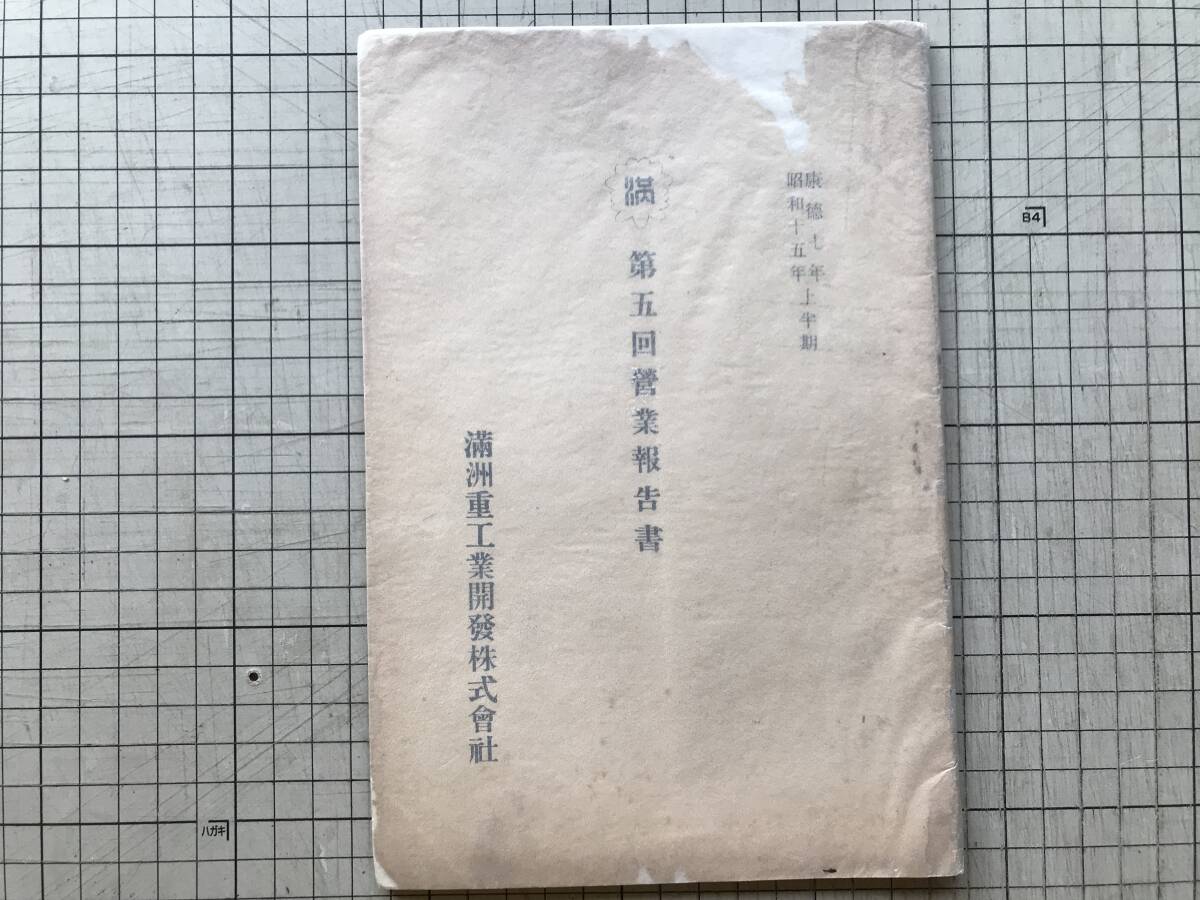 > 『満洲重工業開発株式会社 第五回営業報告書 康徳七年昭和十五年上半期』総裁・鮎川義介 1940年刊 ※日産コンツェルン・投資会社 他 00225