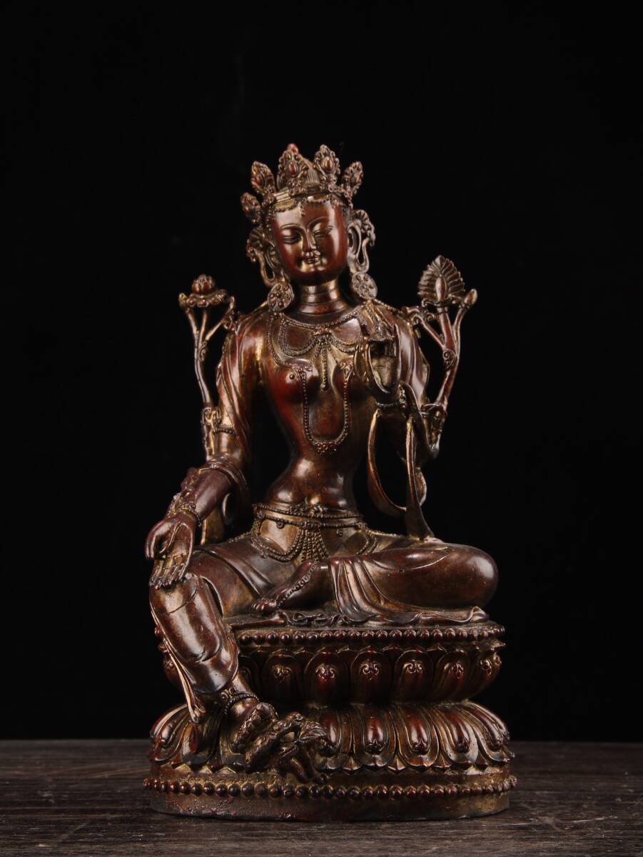 - 【超珍館蔵】銅製 泥金 綠度母像 仏教古美術 供養品 古賞物 古美術品 稀少珍蔵品