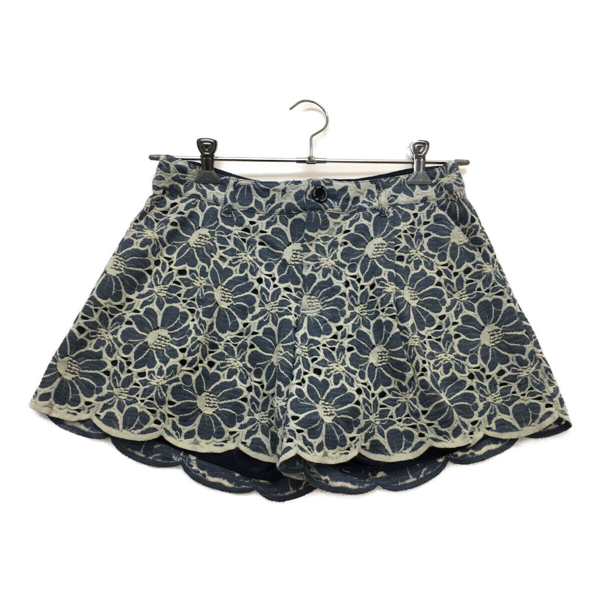 - coco 中古【値下げ】 ゾーイ ZOY ショートパンツ 38(M) 紺系×白キュロット 花柄レース レディース レターパックプラス発送可 94303