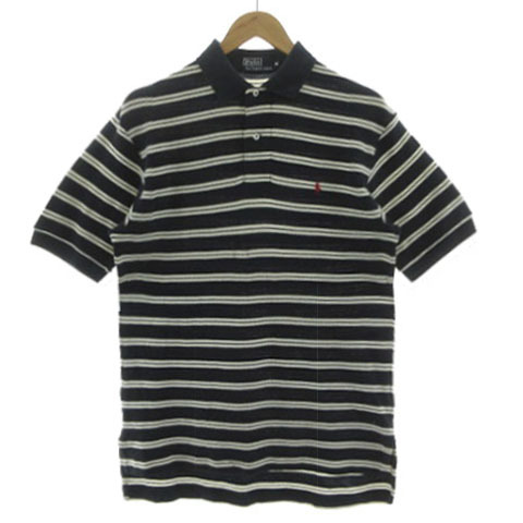 - ポロ バイ ラルフローレン Polo by Ralph Lauren ポロシャツ ニット ポニー刺繍 半袖 コットン ボーダー ネイビー 濃紺 アイボリー M