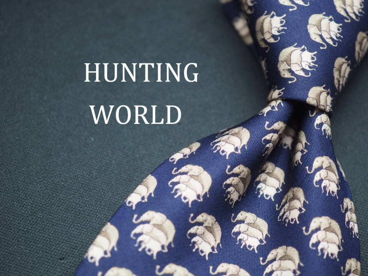 > 美品【HUNTING WORLD ハンティングワールド】 E1738 ネイビー系 SILK ブランド ネクタイ 古着 良品