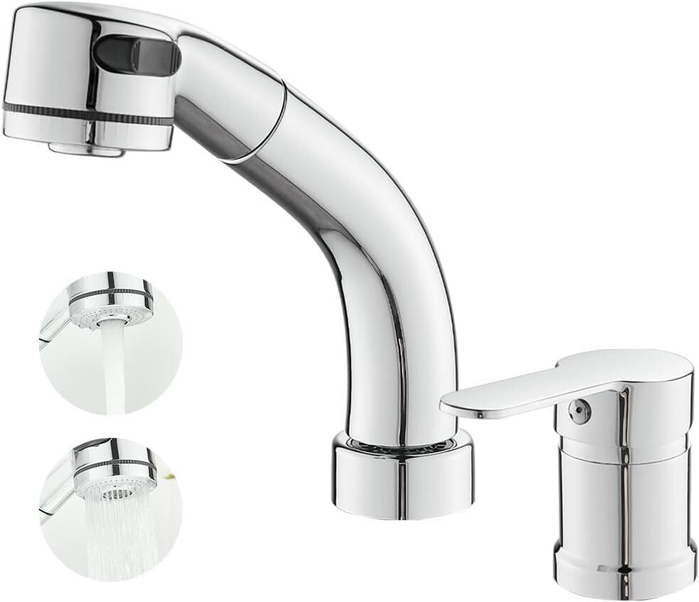 - 【新品送料無料】KOLERTHR 洗面用水栓 洗面台蛇口 シングルレバー混合水栓 ツーホール式水栓 台付き2穴 ホース引き出し式