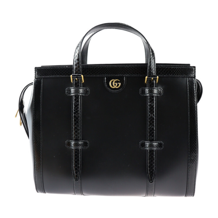 - 超美品 GUCCI グッチ ダブルG ミディアム トート トートバッグ 711057 レザー パイソン 黒 ハンドバ【本物保証】