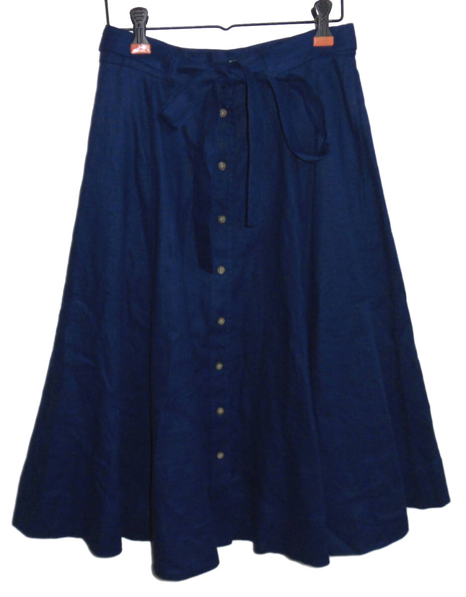 - ◆極美品 RALPH LAUREN ラルフローレン リネン ギャザースカート 0 ネイビー