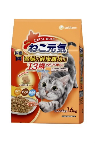 - ねこ元気 腎臓の健康維持用 13歳が近づく頃から まぐろ・かつお・白身魚入り 1.6kg 猫用 キャットフード