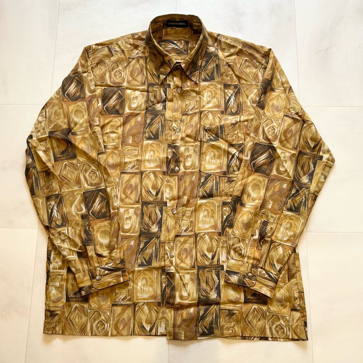 - L'AVENTURIER 総柄 柄シャツ レトロ アート ビンテージ 長袖シャツ ポリエステル100%