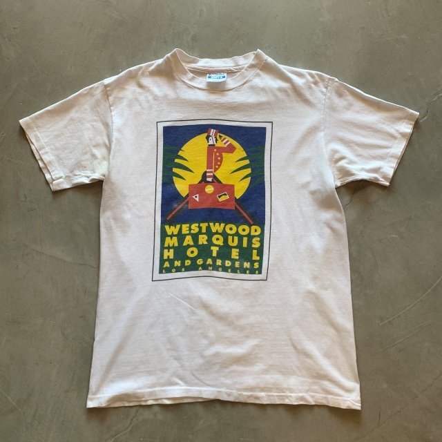 - 【M/L】90s USA製 Hanes ホテル プリントTシャツ 白■ビンテージ オールド アメリカ古着 ヘインズ コットン シングルステッチ アート