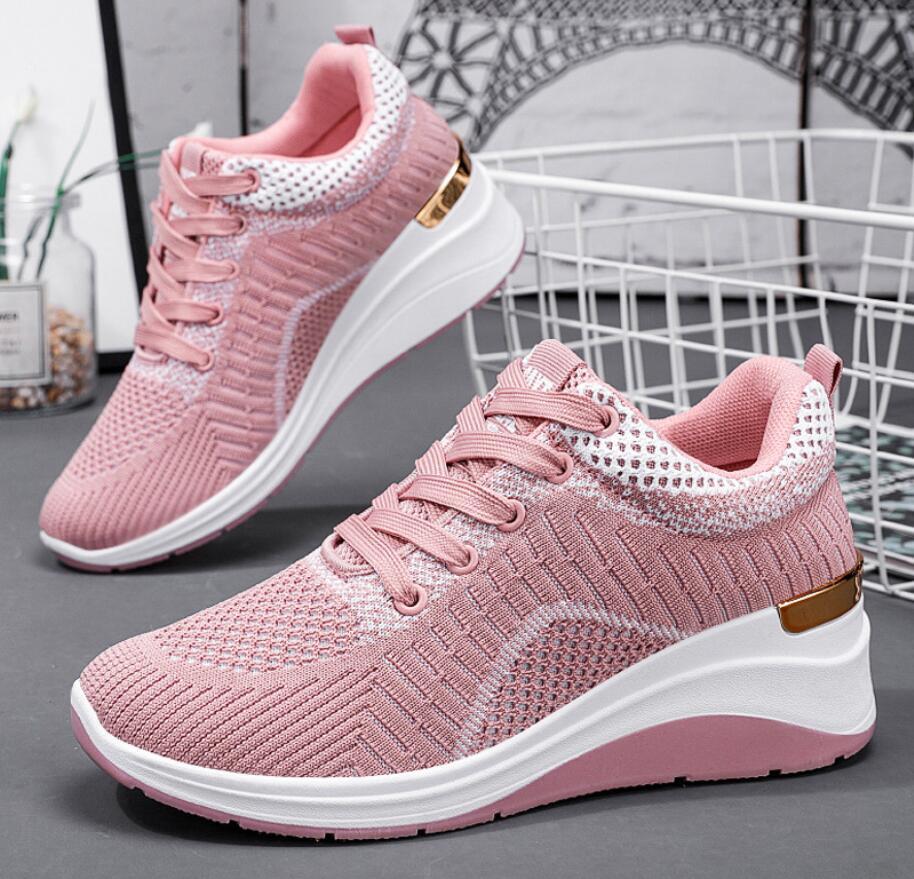 - 人気推薦/レディース メッシュ スニーカー ランニングシューズ ジュニア 上質 軽量 通気 通勤 通学 韓流 ジョギング ウォーキング/ピンク