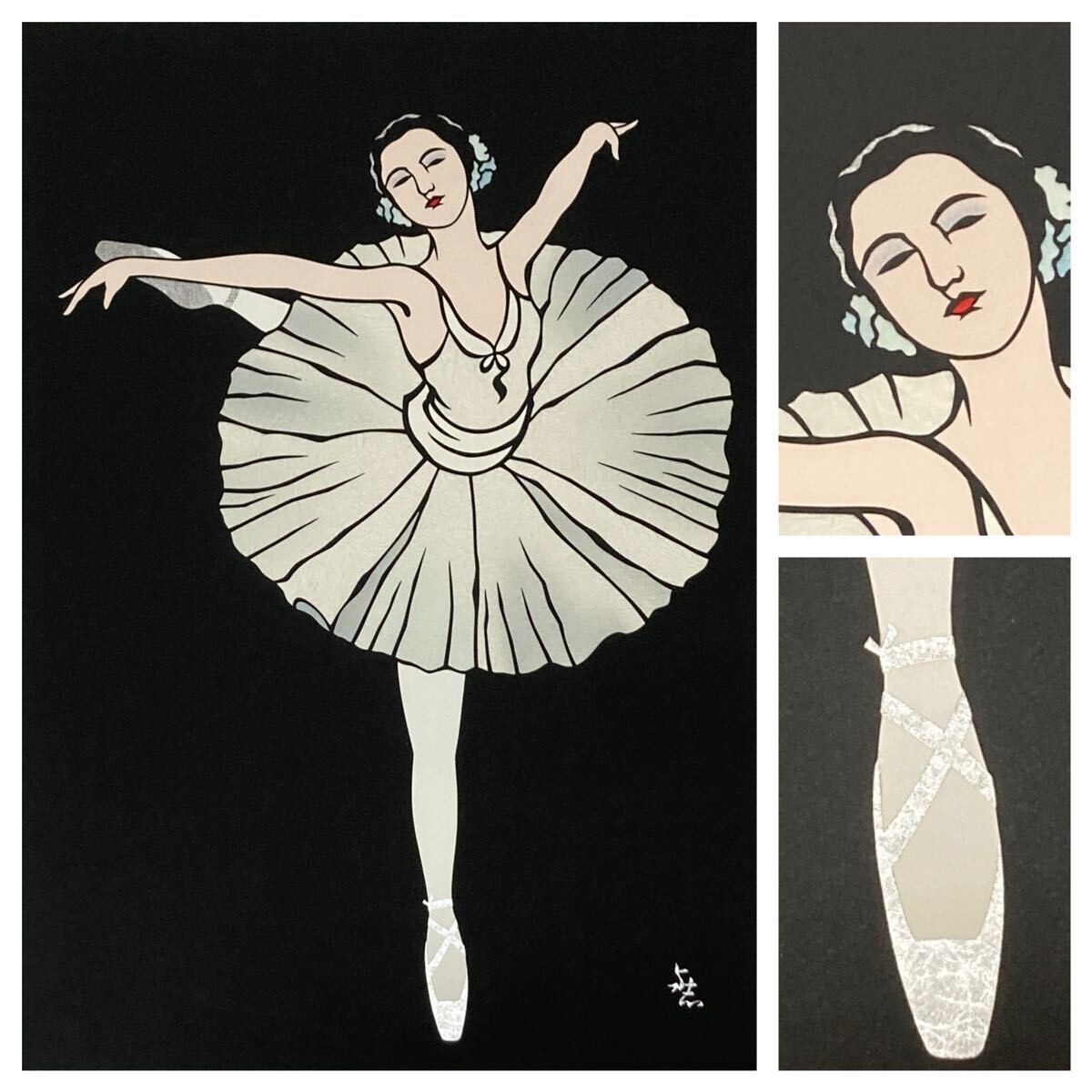 - 真作 美人画 切り絵『バレリーナ』与志 吉一 京都 73cm×54.5cm