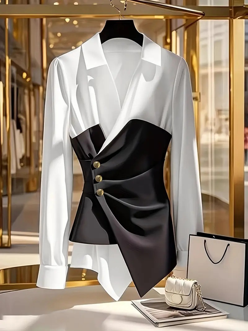 - 男女兼用とても綺麗なブラック&ホワイトのコントラストVネックブラウスなので勿論普段使いからオフィスや夜のキャバからホストもいけます