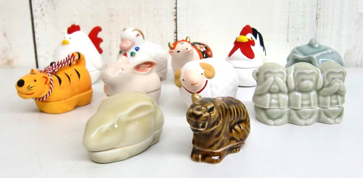 - *伝統工芸 工芸美術 工芸品 *干支 香合 11点まとめ セット*酉 未 丑 子 寅 卯 申(三猿) *箱付き *茶道 茶道具 仏具 日本 伝統