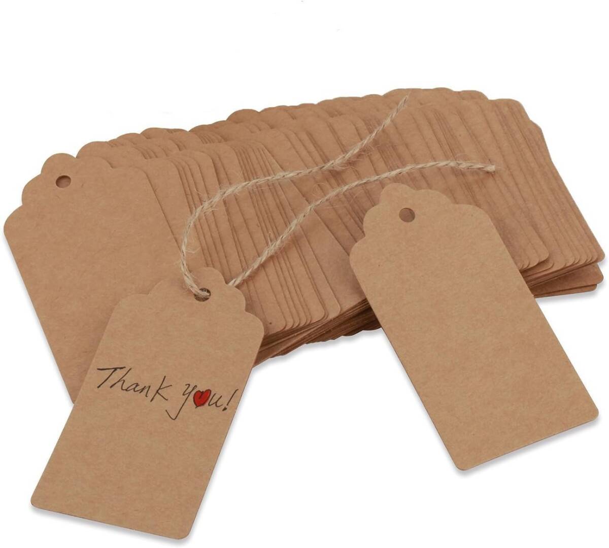 - ネット市場にタグ付きで出品出来る 100枚 長方形 クラフトタグ 値札 (サイズ:43mmx93mm) 麻糸付き