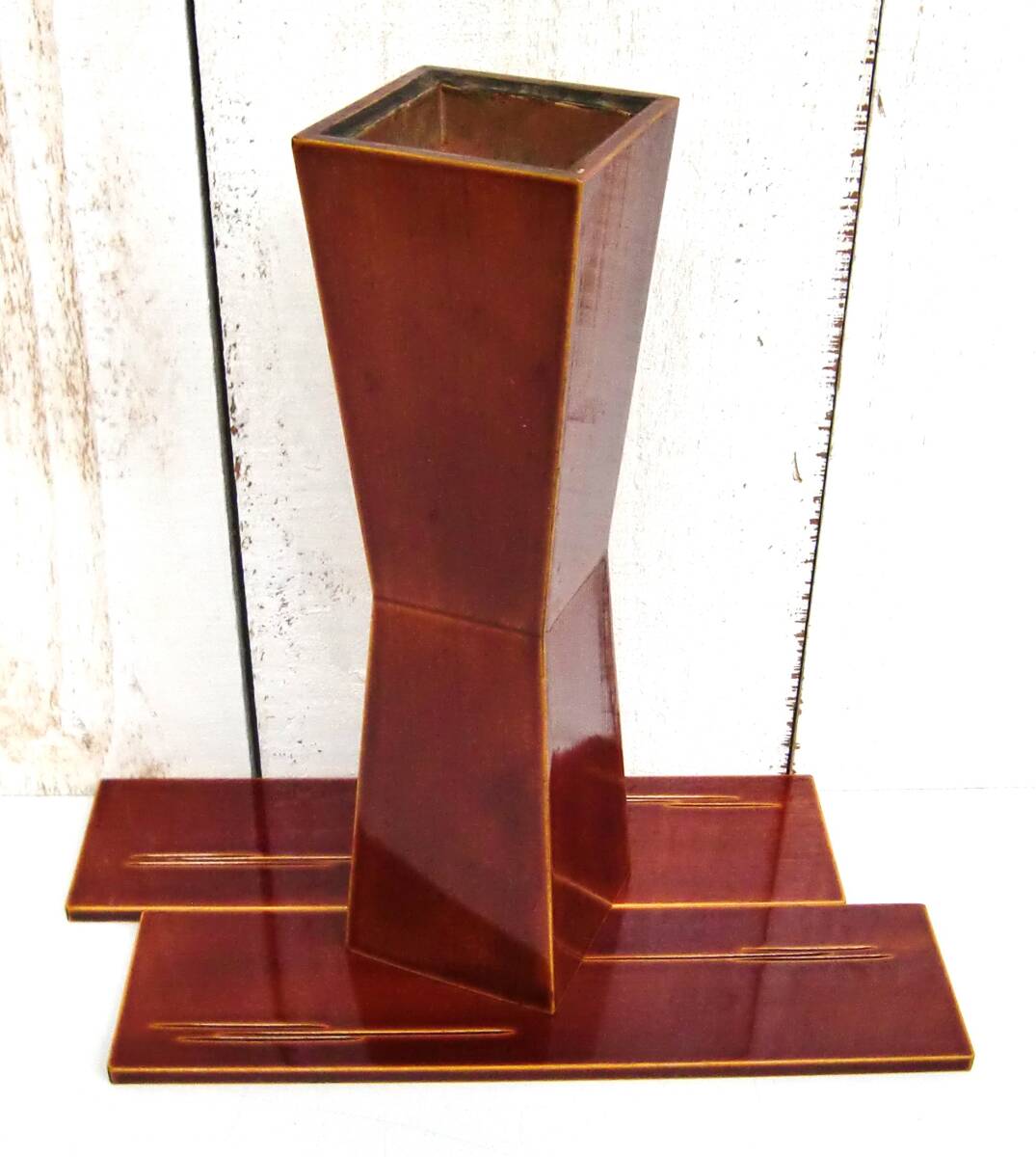 - 伝統工芸 工芸品 工芸美術*飛騨特産 春慶塗 花瓶 敷板2枚付*天然木 木地目 琥珀色 漆塗 *花瓶 花入 花生 フラワーベース *紙箱 栞付き