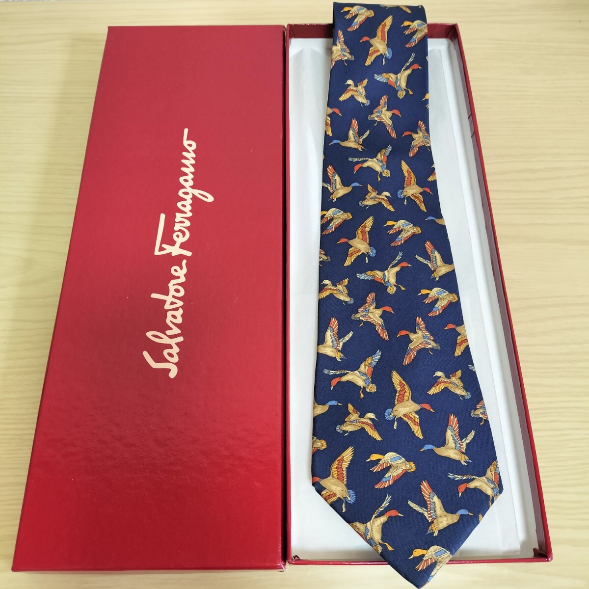 - Salvatore Ferragamo(サルヴァトーレフェラガモ)青鳥羽ばたく模様ネクタイ